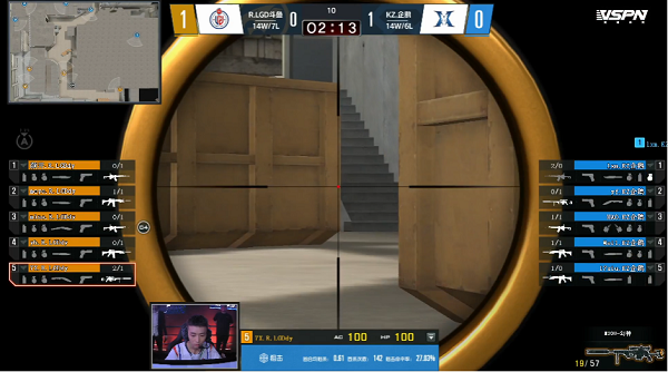 第二图卫星基地,R.LGD率先担任潜伏者。熟悉R.LGD战术体系的CFer都知道:7X就是拿着一把手枪单人抢中路在直箱后徘徊,队友配合走观察,如果中路有动静观察的队友也会及时帮助到7X,在直箱后的7X也不会第一时间被击杀。之后7X上炮楼观察,得到这一有利位置可以收获非常多的信息,而后R.LGD的几位队员就会抱团反清小道或者连接,而且在队友做动作的时候也可以抓住保卫者回防的时机将其击杀。这一战术虽然看似普遍,R.LGD却将7X运用到了极致,无论排点小道或者炮楼架点,他做的都十分到位。