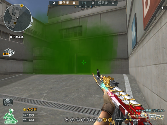 如上图所示,不少作为保卫者的玩家都喜欢在A小道白房这个位置进行防守,尤其是狙击手。由于现在不少保卫者都是选择架第二时间点,所以作为潜伏者的我们第一时间很难对这个位置进行针对,这时就需要一颗瞬爆闪来掩护我们了。