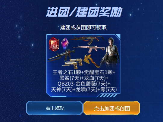 进团/建团奖励!CFer们在活动期间成功完成进团/建团后即可直接无门槛领取一份组团豪礼!众多英雄级补给道具直接领取~