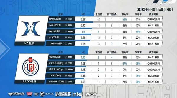 KZ战队相对于R.LGD而言踏入联盟较早,但近几赛季也为了提升阵容活力而启用新人。本赛季他们进军决赛的阵容中就包括yf与17xiu两位小将。这更是两位选手第一次进军决赛,对于新人而言,总决赛的气氛无疑是使人紧张的,所以他们很难发挥出自己的全部实力。但是通过比赛看出他们仍然极具潜力,yf在与7X的全场对位中平分秋色,而且在残局中换用步枪的收割能力更是顶尖。