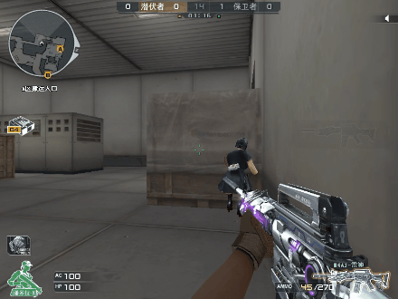 如上图所示,当我们成功跳到木箱后,便可以对铁箱后进行清点了。利用大跳向前跳,避免被A小道的狙击手狙击到,也可以给在铁箱后没有防备的保卫者一个措手不及。