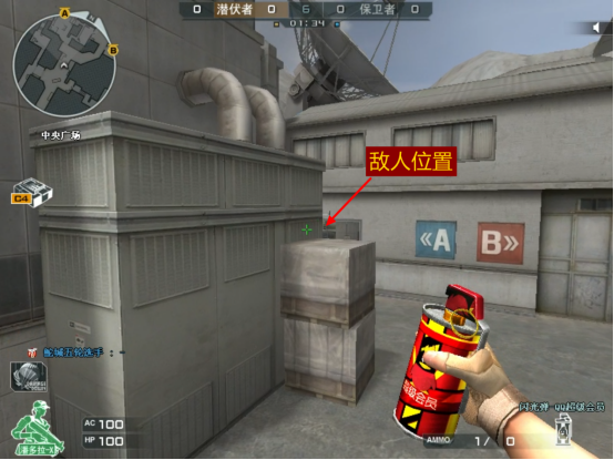 而保卫者有时也会躲在铁箱后故意不露点,选择让潜伏者过点后打背身。今天教大家如何不暴露声音对这个位置进行清点。