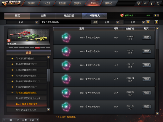 其二合成系统,很多CFer希望“三个臭皮匠合成一个诸葛亮”。所以神秘商人开启期间,必然有众多“无用”光效,通过合成来换取雷神、火麒麟、毁灭等主流武器永久光效,数量多了,供大于求,降价迫在眉睫…