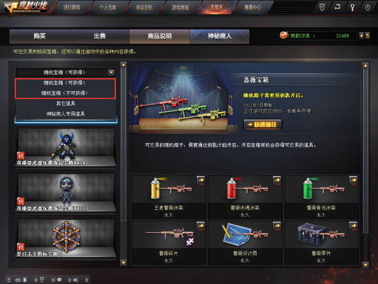 神秘商人中的活动宝箱会增加开箱量,而价格更低的随机光效宝箱,自然得到更多CFer的青睐,50*N个随机光效箱子下去,枪械光效自是少不了,这是其一。