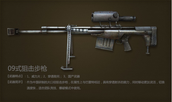 所以有一些玩家提出,是不是可以考虑在游戏中打造出第二款英雄级“重型狙击枪”呢?如果是这样的话,那“09式狙击步枪”自然是成为了最佳的“候选者”。